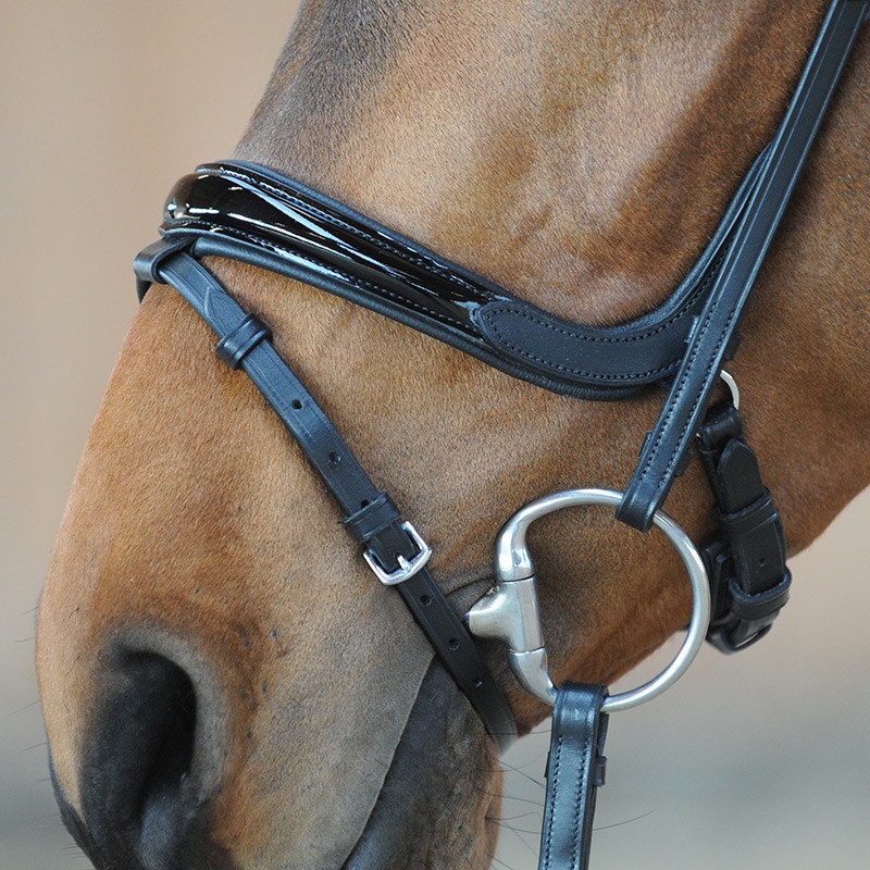 * kapsel ja kaarjas otsmikurihm läikiva lakknahaga, otsmikurihmal kivikesed
